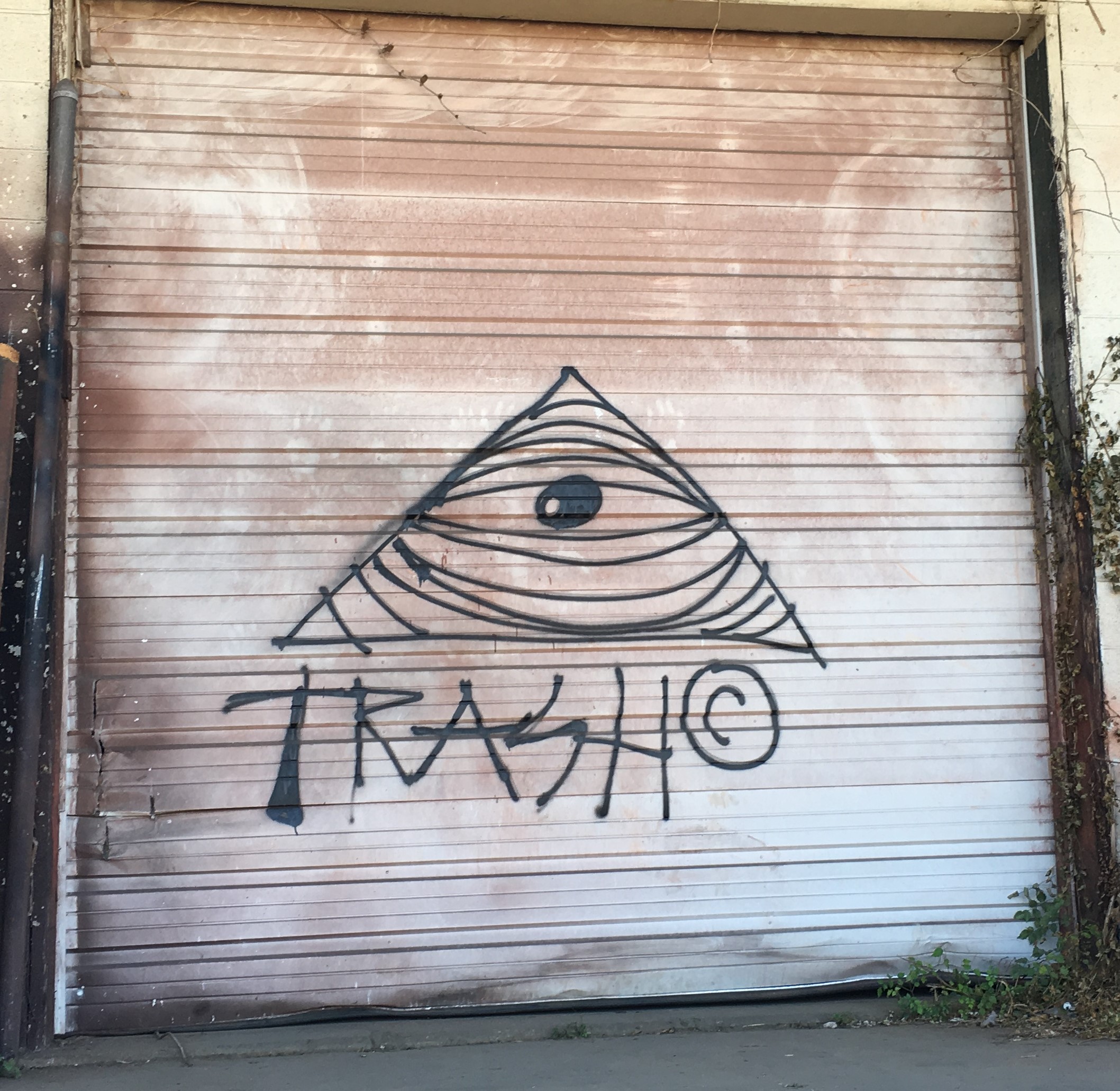 The complex at 1900 Warner, prominently labeled “Mimms Center,” was once the home of Malcolm and Associates, a lighting company, but it is now empty, though apparently it was recently purchased by developers. Which means the graffiti on the back side is not likely to survive much longer. I call this “dangerous steps” because I only made it to the top of the first set of steps. I would have had to cross a metal roof to get to the next set but said roof had lost its shingles and has rotted through in some spots, and I had no intention of putting my weight on it. I’ve also included a couple of less elaborate tags on the building, including one half hidden by a huge metal slab I decided not to try to move.