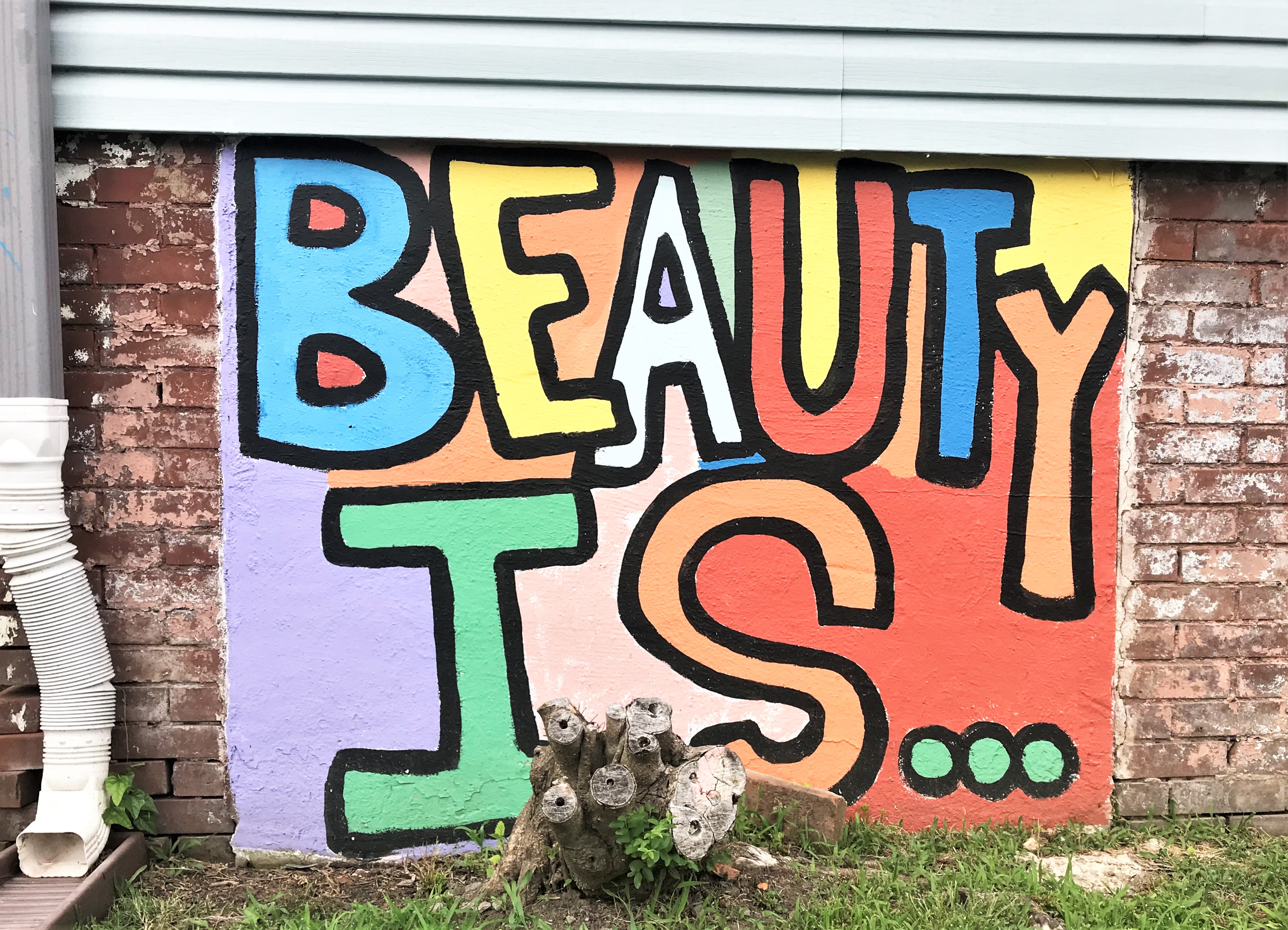 Founded in the teeth of the 2008 financial crisis, Fanny’s House of Music has become a neighborhood icon that has gained national recognition for its place in the music business and its role in providing a comfortable space in music for all, particularly women and girls. The owners, Pamela Cole and Leigh Maples, both music business veterans, named their store after Fanny, one of the first significant all-female rock bands. They’ll sell you a guitar, and they’ll teach you how to play it, too. And they have art. The large painting is by Scott Guion, a New Orleans based artist. It features a whole host of female artists, like Suzie Quatro and Maybelle Carter, Dolly Parton and Joan Jett, and many more. You can get smaller versions inside. The Carter image on the mural is based on the same photo used as the inspiration for the mural featured in Carter Vintage Guitars (Part 2). Along the bottom of the house is a series of unsigned panels that are the work of Andee Rudloff. The text reads “Beauty is having the courage (explore) to be you.” [Parentheses mine]