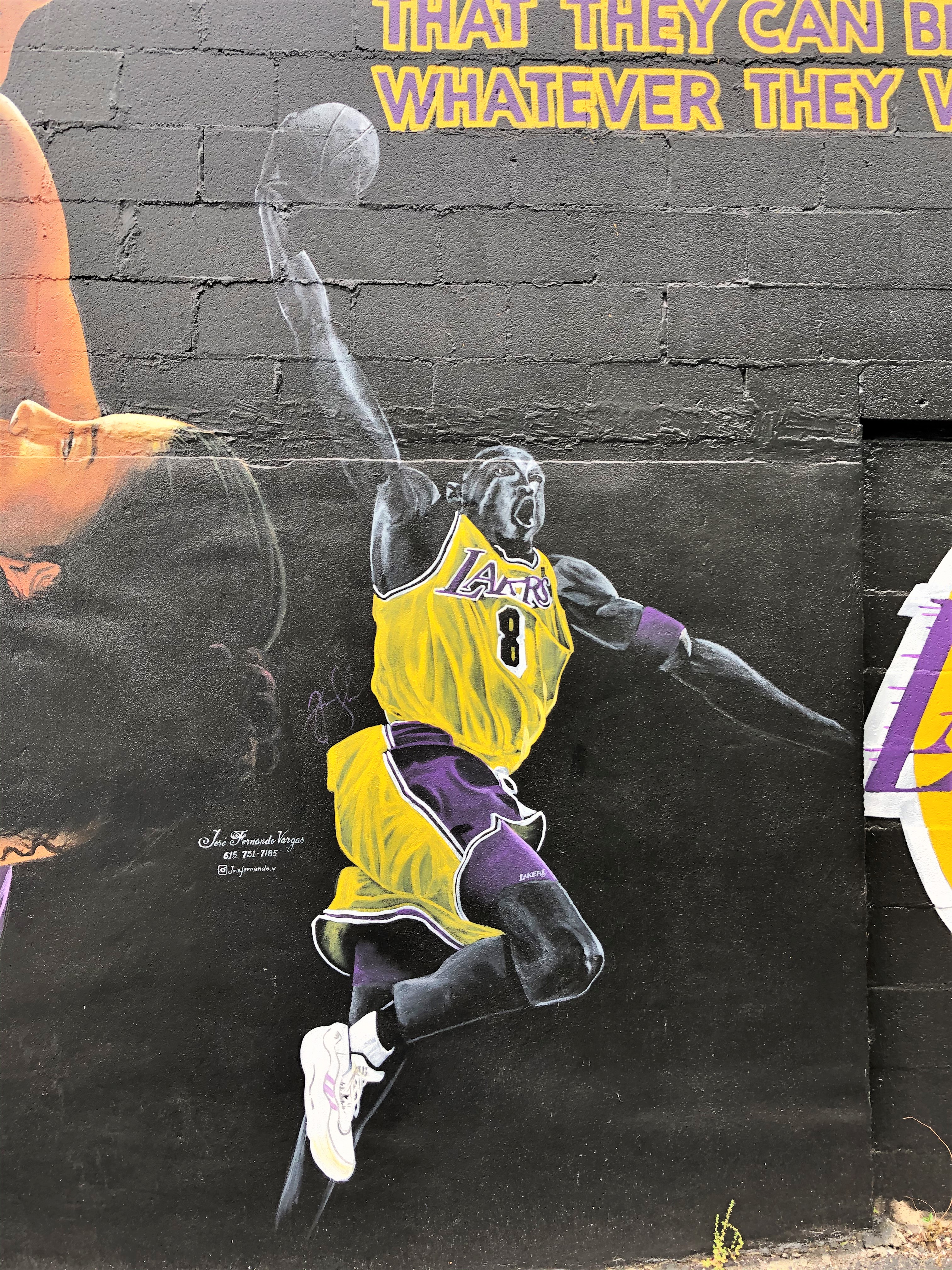 Since the death of Kobe Bryant, at least three memorial murals have appeared in Nashville honoring him. I’ve already written about one by JamersonSGC, which I featured in Strength and mourning. Another, which I’ll feature soon, is found on 51st Ave North at This Red Bicycle Coffee. It is interesting that of all the icons that have been lost of late, Bryant has gotten this much artistic attention.