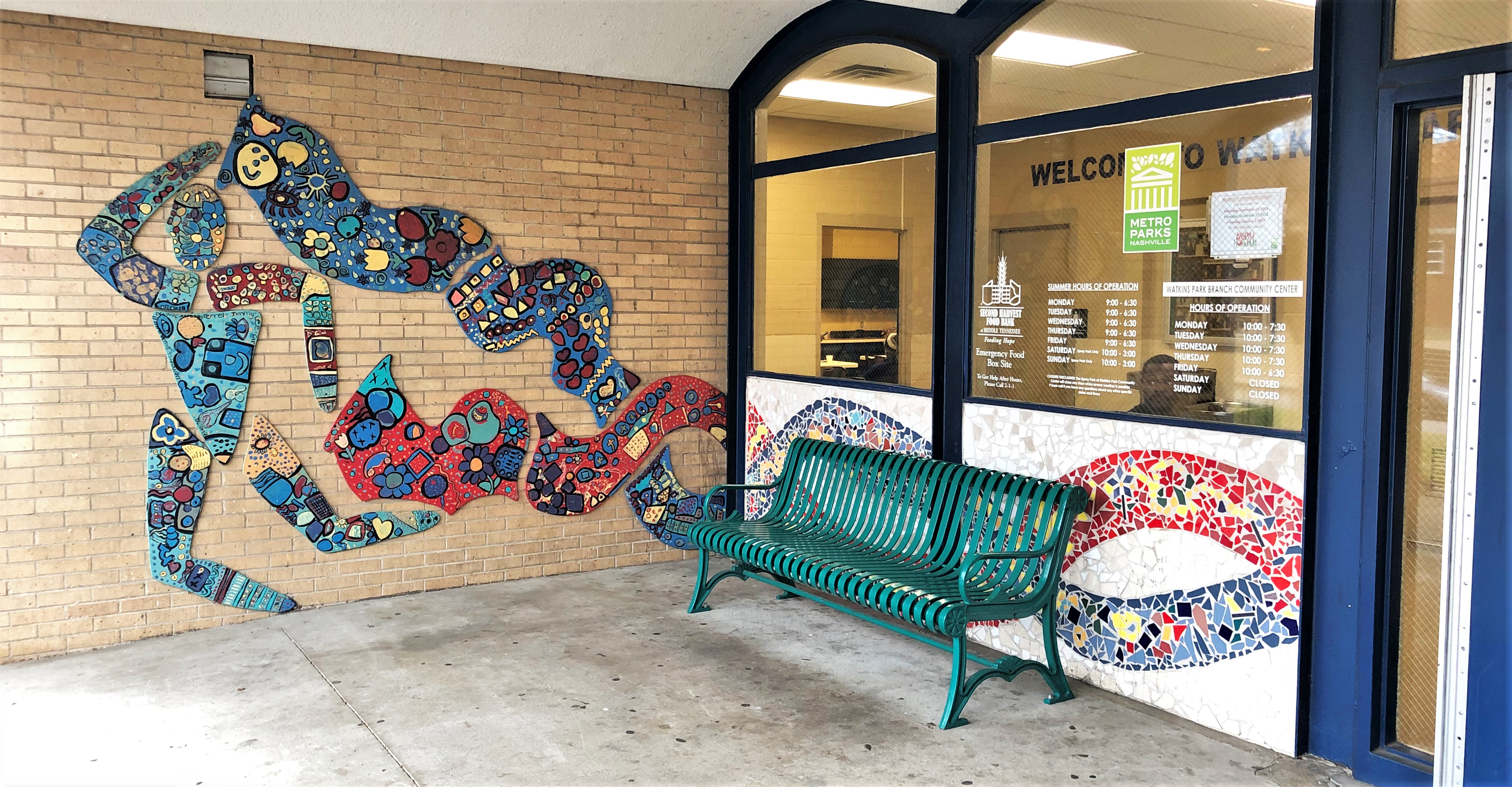 This mural is hard for me to miss, as I only live a block away – though it’s not the closest mural to my house! This is unmistakably the work of Andee Rudloff, along with students of Lockeland Design Center, an elementary school in in Lockeland Springs where the mural is found. You might know Lockeland Design for its strong reputation, or you might know it because it was featured in a Kleenex ad that honored a long-time janitor.
